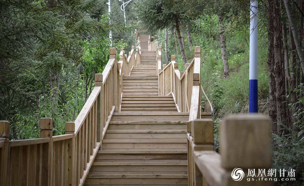 木制的栈道散发着自然的气息,清新、湿润,从这里一路攀登,即可到达山顶。杨艺锴 摄