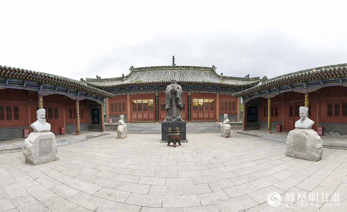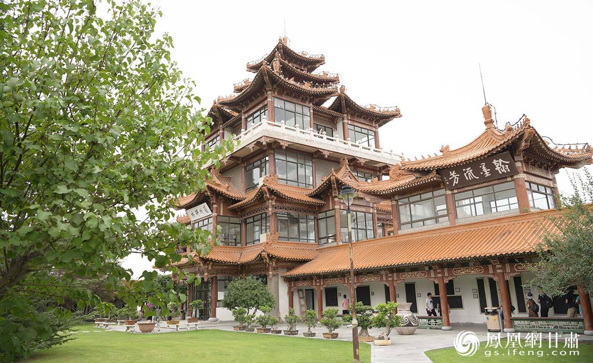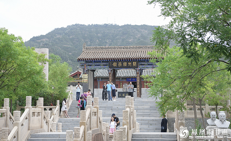 在黄河北岸沿罗九公路上山,或者步行拾阶而上,“兰州国学馆”的牌匾在精美的砖雕中映入眼帘。兰州国学馆依托市级文物保护单位皋兰县文庙古建筑群,历时4年时间,经改建、创意、充实、丰富而成,占地1.2万平方米,建筑面积1500余平方米。 杨艺锴 摄